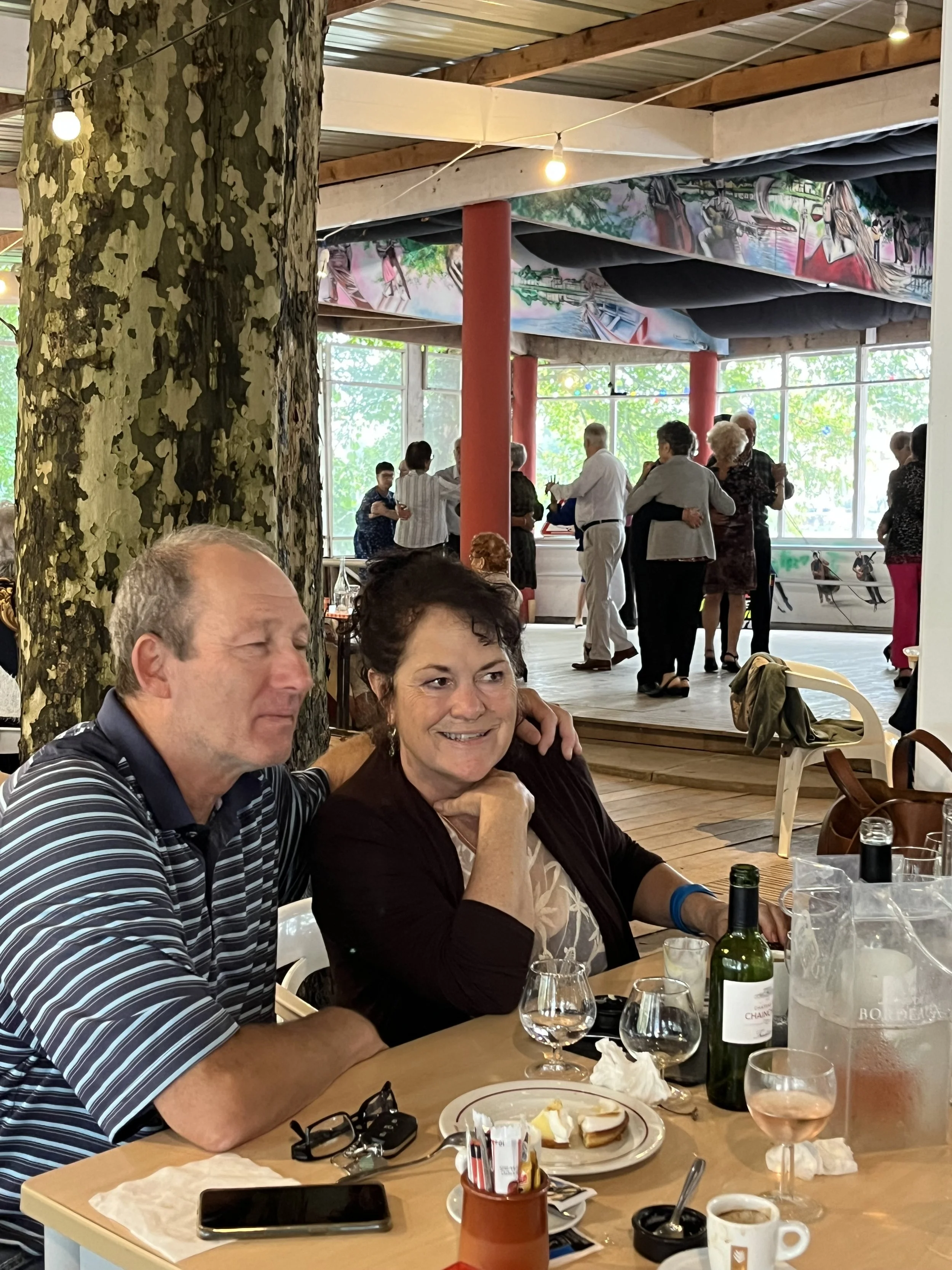 This restaurant is just over the River Dordogne from Castillon-la-Bataille and has nearly 100 years of history. The food is terrific local fare, try the Salade Perigourdine if you love duck like we do. There is live music and dancing. Terrific fun on a Sunday afternoon in the summer time.